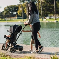 New 🔥 4.1 Kids Tricycle With 4-Stages Featuring Extra-Wide Front Tire, Removable And Adjustable Parent Handle, Safety Harness, Machine-Washable Seat Pad, And Retractable Canopy (Black) 🤩