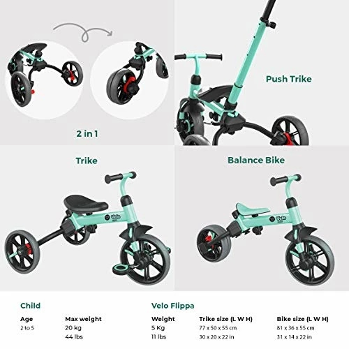 - ? βTWIST AND FLIPβ: Parents can easily press a button, flip the two rear wheels inward and convert to Balance Bike mode in seconds.