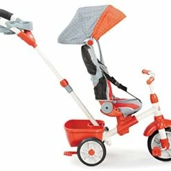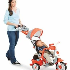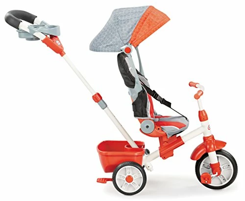 - 5-stage deluxe toddler trike grows with your child with a full shade canopy and quiet-ride tires