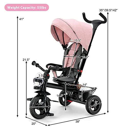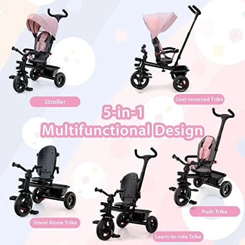 - ?5 in 1 Toddler Tricycle: The baby tricycle features 5-in-1 multifunctional design. It can be used as a baby stroller, seat-reversed tricycle, push trike, learn-to-ride trike or stand-alone trike according to the demands of your kids, accompanying them in different growing stages.