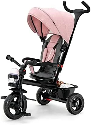- ?Multifunctional Toddler Bike: The seat of the baby tricycle can be reversed according to your needs by loosening the screws on the bottom. Thus, your kids can either face outside or inside. The top canopy can be adjusted into 3 positions according to the climate change. And the push rod can be also lift up or down to match parentโs height.