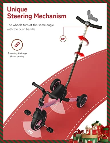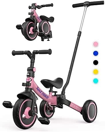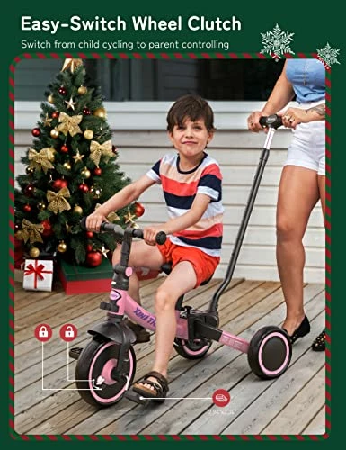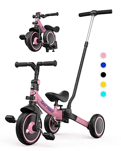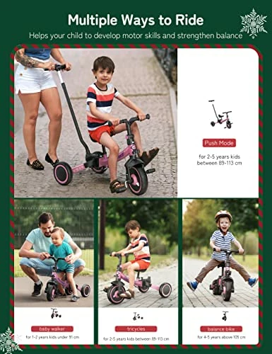 - One Purchase, Multiple Pleasures: This kid tricycle is engineered to be easily switched between multiple riding modes, including parent steering push mode, tricycle mode, balance bike mode, baby walker mode, and more. Perfect birthday gift for 1-5 years old boys and girls.