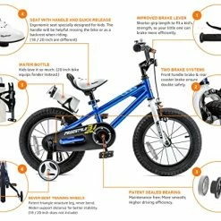 - ?Specifically For Kids – Each bike equipped with RoyalBaby patent sealed bearing for smooth pedaling. Training wheels come with 12/14/16 inch bikes, making it easy to maintain balance and learn to pedal even for young beginners. The water bottle and holder adds more joy to the ride. Fully adjustable seat and handlebar will give extra space when kids grow taller