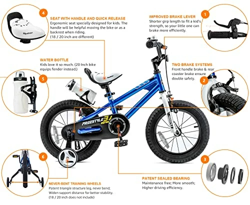 - ?Sporty Design – RoyalBaby Freestyle kid’s bike was designed by inspiration from the BMX spirit, It’s all about fun, creativity, freedom, and friends. The sporty-looking is perfect for the next cycling star!