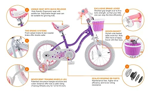 - โญ ROYALBABY STARGIRL BIKE FOR GIRLS โ Fashionable design and classic color matching. Eye-catching twinkling stars decals imply every girl is unique, independent, develops at their own pace and shine like the stars in the sky. A quality option includes all features that girls love.