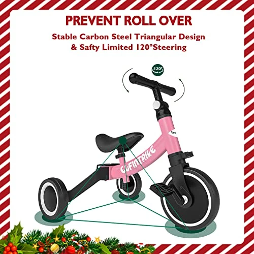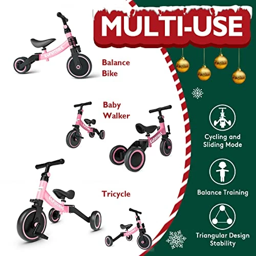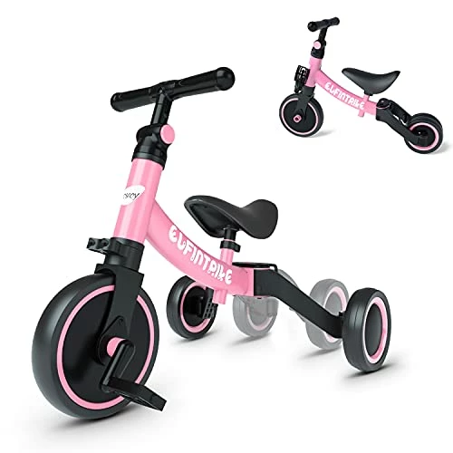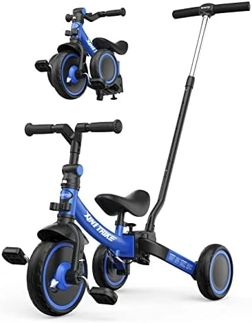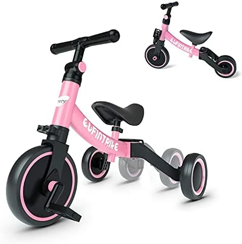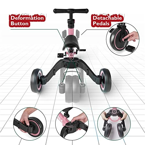 - ?5-in-1: 1:Tricycle without pedals (learn to walk) 2: Baby walker without pedal (can go a little) 3:Tricycle with pedals (learn to ride) 4: Baby walker with pedals (Learn to ride stage 2) 5: Balance bike without pedals (for sliding)