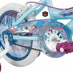 - Style: The Ice Blue frame is decorated with Frozen 2 graphics; shimmering streamers and handlebar bag included; fun snowflake designs on the handlebar grips and white tires complete the Frozen theme