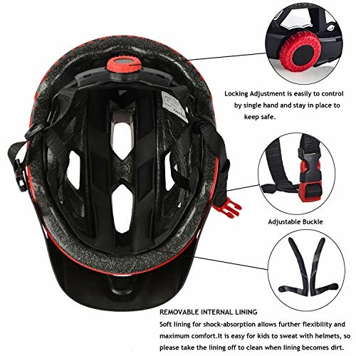 - Visor and Adjustment System: Single-Hand dial retention system is easy to adjust and make the cycling helmet perfect fit on your head, The detachable visor on the boys bike helmet prevents the sun from shining directly into the child’s eyes providing more shade.