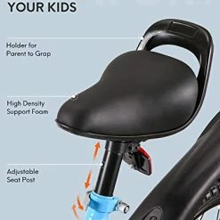 - ?Ergonomic Comfort Design :Ergonomic and adjustable saddle, comfortable for ride. Full Coverage with soft silicone for child safety.The multi-layer padded design of the bike seat is filled with foam to make your child more comfortable and riding more enjoyable. It ideal as a gift for children