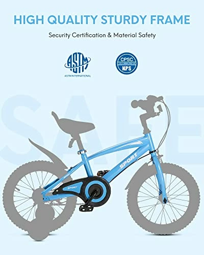 - ?Safe for Young Riders๏ผSturdy steel frame is durable, non-hazardous quality painted and CPSIA and ASTM certified. The curved design of our kids bike frame makes it easier for children to use. A fully enclosed chainguard protects legs and reduces bike chain maintenance