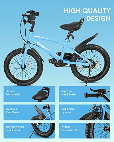- ?Wide Non-Slip Tires: Our 18 inch kids bike is equipped with non -slip and resistant tires can better ensure the safety of children on wet or unpaved roads.The bike tires are make of durable rubber with extra width to prevent from dangerous bursting. With wide air-filled tires make for a smooth ride and suitable for complex terrain