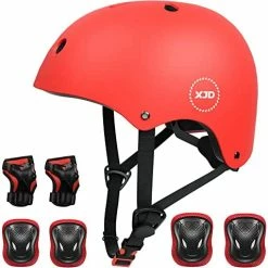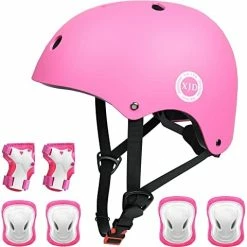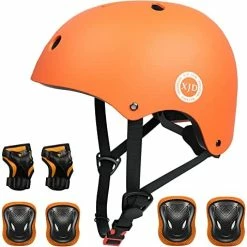 - γIMPACT RESISTANCEγThis scooter helmet use ABS outer shell+high-density EPS inner shell, thickened soft sponge, comfortable and durable. Protective gear Made of tough and durable PP, PE materials with breathable Polyester sleeves, these make the child enjoy the sports experiences with safety protection to their head knee elbow and wrist