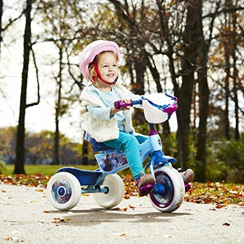 - Great for kids: The Frozen 2 tricycle features two storage bins for snacks and toys