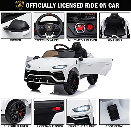 - ใLuxurious Realistic Detailsใ: Ride the car includes bright LED headlights, 2 door openings, built-in music, rubber traction tires, adjustable seat belts, and a powerful and reliable electric braking system. Dimensions: 41.4โ (L) x 25.6โ (W) x 20.5โ (Hโโ). Weight Capacity: 61 lbs. If you have any questions after purchase, please feel free to contact us.