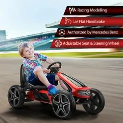 - 【LUXURY REALISTIC DETAILS】: ride on car includes bright LED headlights, 2 opening doors, built-in music, rubber traction tires, adjustable seatbelt and a strong reliable electric brake system. Overall dimension: 41.4” (L) x 25.6” (W) x 20.5” (H). Weight Capacity: 61 lbs.
