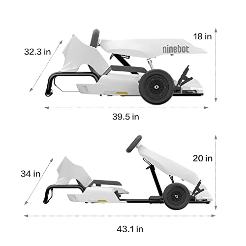 - Drift Racing Excitement: Segway GoKart features a handbrake and brake pedal to switch forward and backward. A high steering ratio of 2.1:1 allows for precision steering while the strengthened seat belt ensures the rider’s safety. Vehicle size: After extension (Max status): 54ร32ร24 in (1383ร822ร600 mm); before extension (Min status): 40ร32ร18 in (1004ร822ร459 mm)