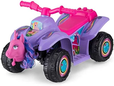 - This unicorn themed toddler quad is perfect for backyard, sidewalk, and driveway adventures. Seats one rider, ages 18 โ 30 months, with a maximum weight limit of 44 lbs