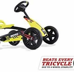 - ALWAYS STABLE DUE TO THE FOURTH WHEEL The BERG’s Buzzy hugs the road with its four off-road wheels and swing axis. Your child on a Buzzy is the boss of every terrain.