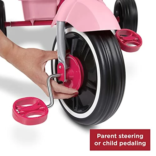 - PARENT-CONTROLLED STEERING: The height adjustable parent push handle provides easy control. The foam grip adds comfort. The push handle is removable for when the child can ride on their own.