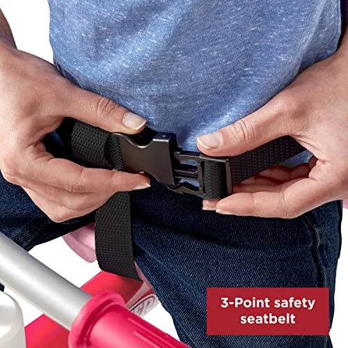 - REMOVABLE ACCESSORIES: The removable accessories allow this tricycle to grow with your child. The accessories include an adjustable UV protection canopy, wrap around tray, headrest and seat belt, footrest, and parent push handle.