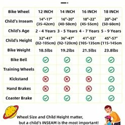 - 5. More Size Options! 14, 16, 18, 20 Inch available, the handlebars and seat height are all adjustable. Use our kids bike size chart, you’ll find a perfect size for your little beloved. Note: Please take the kids height into consideration.