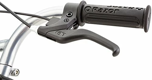 Blast into the future with the PowerRider 360 – the all-new, electric powered three-wheeler from Razor! With the push of a button, you’re off – no pedaling required. Race at speeds up to 9 mph, cut full 360 degree spins, slide, even drift on PowerRider 360’s high-performance duel inclined rear caster wheels. Features a chain-driven motor, with push button throttle, up to 40 minutes of continuous use, front, hand operated braking system, welded steel frame with moto-style double crown fork design, hi-impact pneumatic front wheel, rear, dual inclined casters for drifting and spinning action, rubber grips, and folding foot pegs. Also includes, a12V sealed lead acid rechargeable battery system with charger. 12 hour battery charge time. Recommended for ages 8 and older and will support a rider up to 120 pounds. The buyer and rider of the PowerRider 360 are responsible for knowing and obeying all local, state and federal regulations regarding the riding and use of all Razor electric vehicles and scooters.