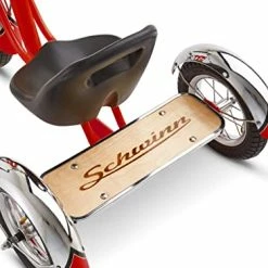 - The rear deck is made of genuine wood with burnt in Schwinn logo, while the scalloped chrome fenders provide a fashionable ride