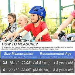 - ? HEAD SIZE: X-Small: 18.11-20.08 inch(46-51 cm), suit for 1-5 years old toddler; Small: 20.47 – 22.05 inch (52β56 cm), suit for 5-8 years old kids. We offer two different sizes of toddler helmet in order to give a comfy fit for kids.(Use a string and tape measure to measure your childβs head before order)