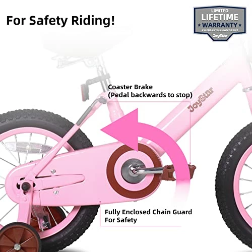 - Safe for Young Riders – Coaster brake is easy to provide phenomenal stopping power when needed, so they can stay in full control, a great option for young rider. Enclosed chain guard, prevent your kids getting hurt. Removable training wheels will keep everything pointing in the right direction till she’s ready to balance on her own.