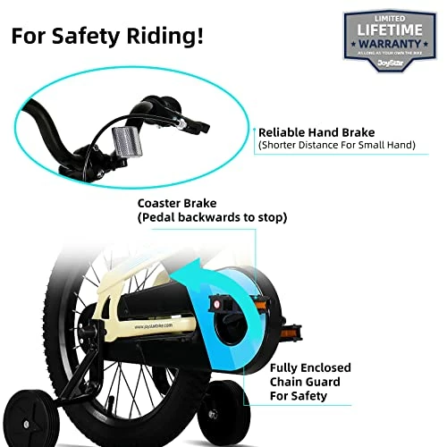 - Safety Riding: Coaster brake and Handbrake offer double safer, this kids bike will have more stopping power. And the wheel wrapped in Rubber off-road tires for outstanding grip and stability in any weather conditions.Full coverage chain guard is for protecting childrenโs little hands, feet, and clothing